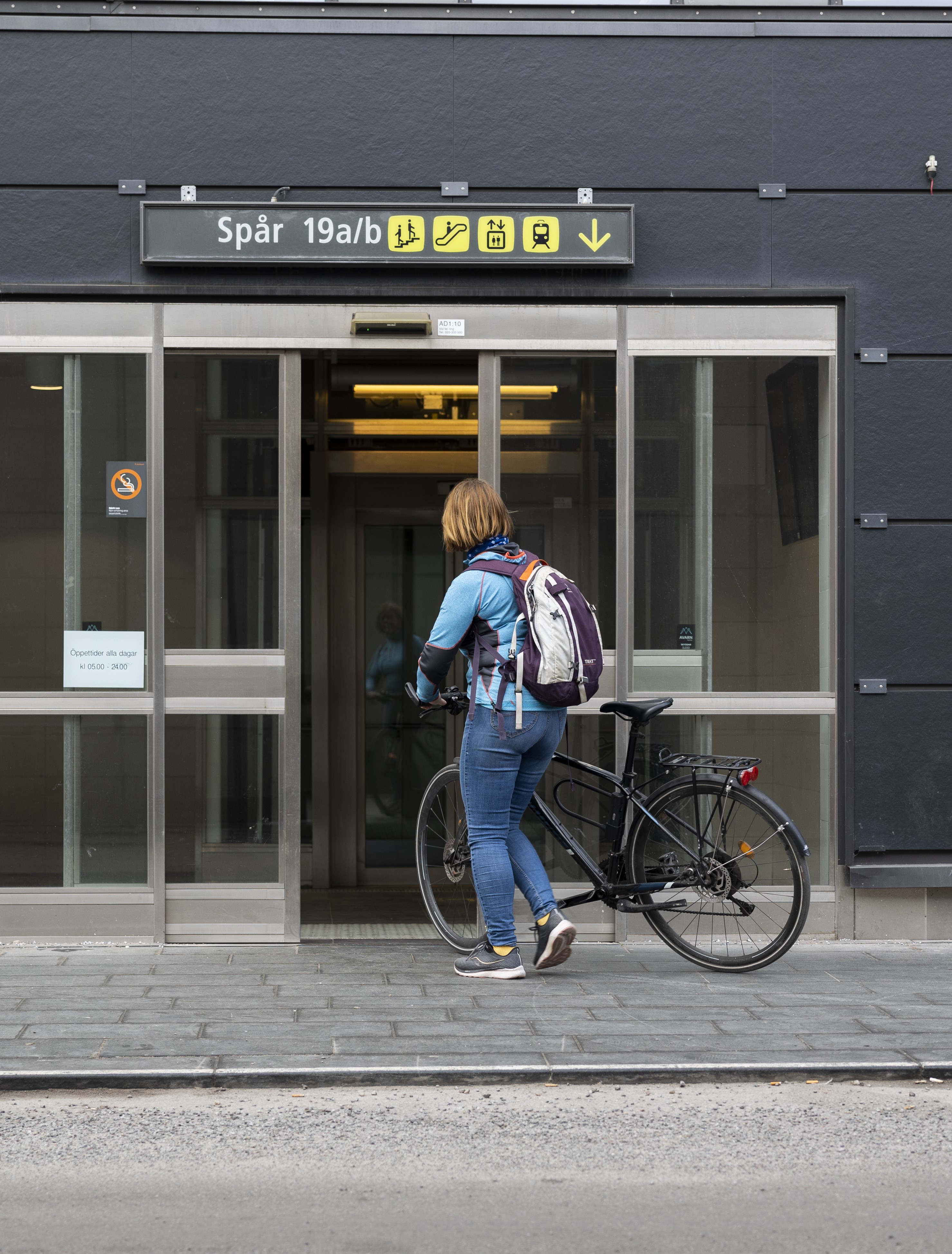 Bicycles are not allowed to pass through station buildings. You must lead your bike around the station buildings or follow the designated routes. Here you can find directions for cycling at Stockholm C and Västerås C.